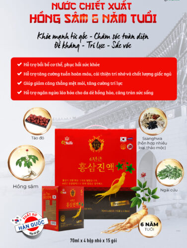 Elnutri – 120 gói Hồng sâm nước Hàn Quốc 6 năm tuổi Elnutri 70ml/ gói