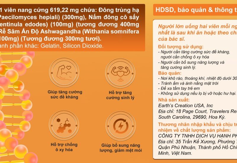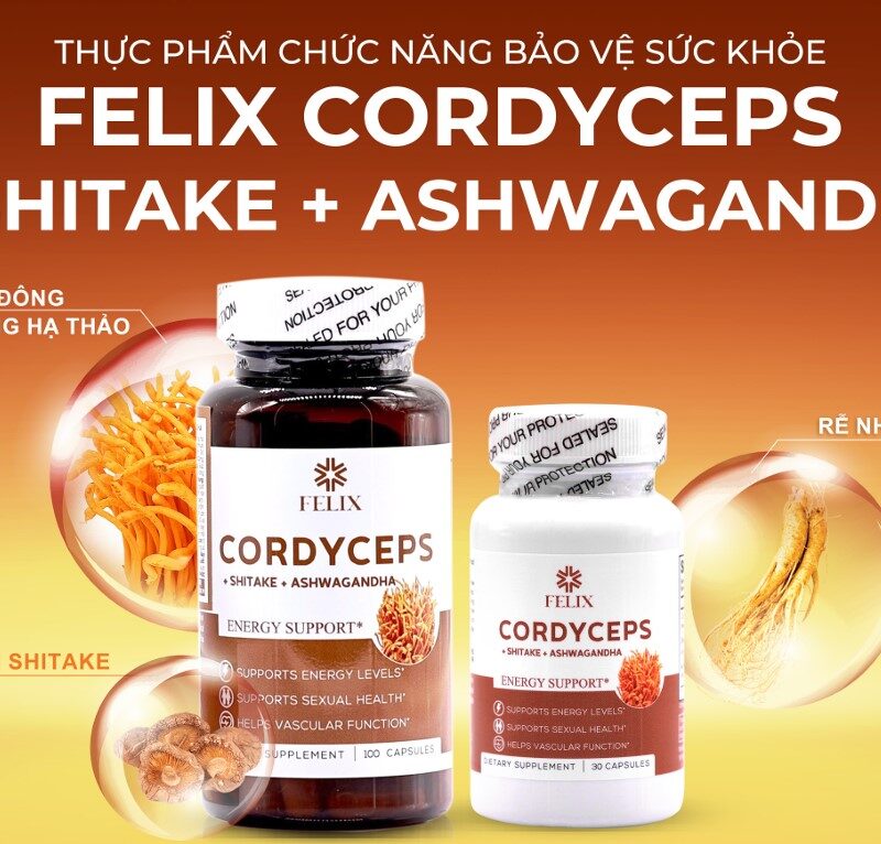 | Tên sản phẩm | Viên Uống Bảo Vệ Sức Khỏe Cordyceps + Shitake + Ashwaganda 100 viên |