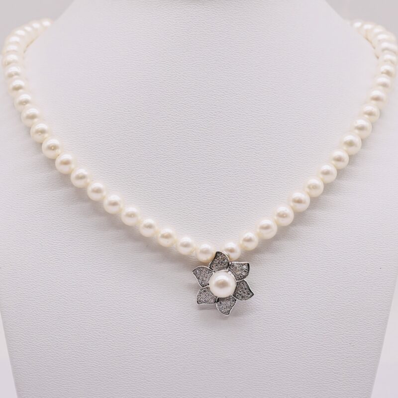 Size ngọc trai vòng cổ: 7-8 li, thiết kế thanh lịch và tinh tế.