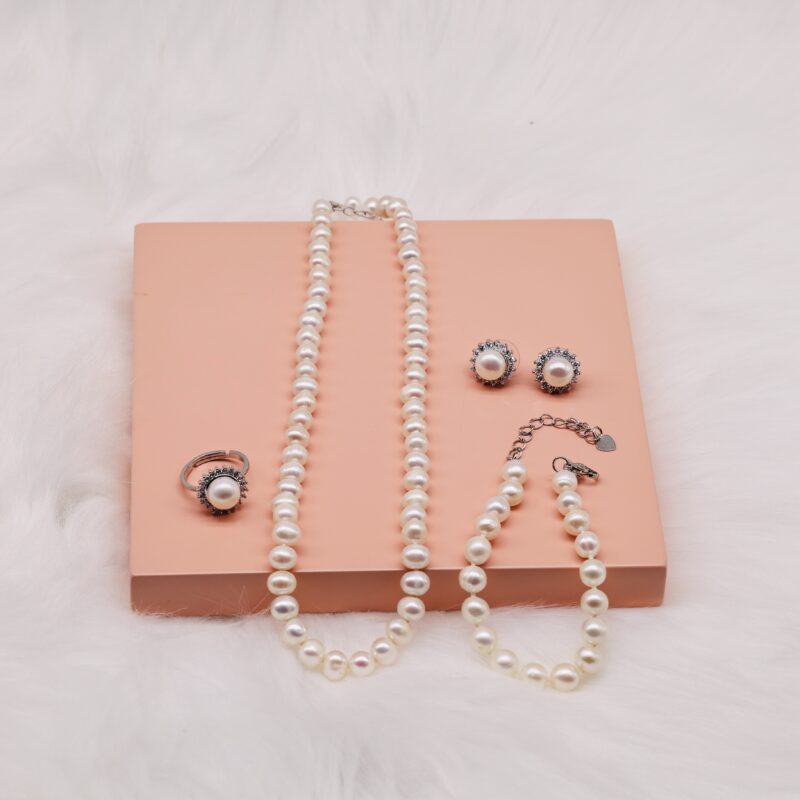 Size ngọc trai vòng tay: 7-8 li, đồng bộ và hài hòa với vòng cổ.