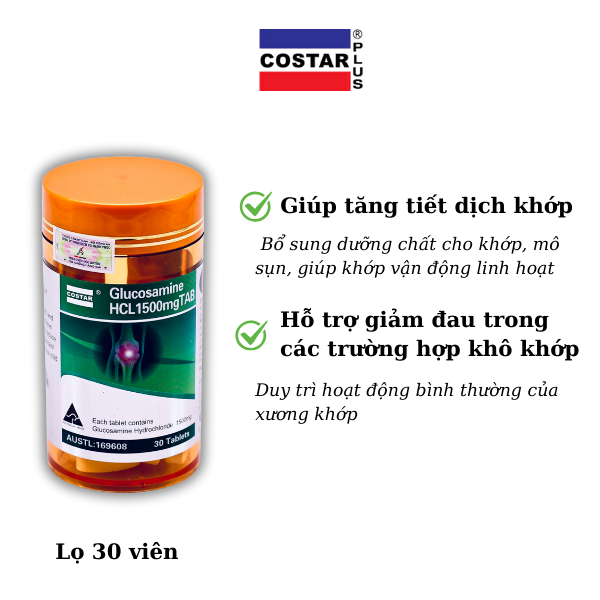 | Tên sản phẩm | Viên uống bổ sung xương khớp Costar Glucosamine HCL 1500mg 120 viên |